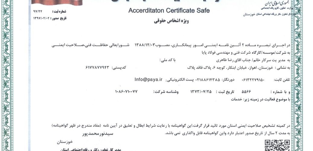 دریافت گواهینامه تایید صلاحیت ایمنی پیمانکارانمدیریت سایت1397/02/05گواهینامه تایید صلاحیت ایمنی مدرکی است که اخیراً توسط مرجع وزارت تعاون، کار و رفاه اجتماعی و مستقل از موسسه استاندارد و ... ادامه مطلب
