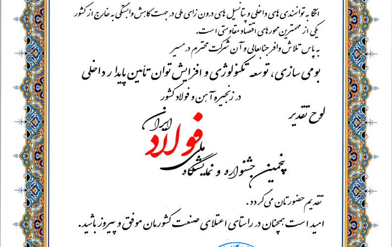 لوح تقدیر پنجمین جشنواره و نمایشگاه ملی فولاد ایران